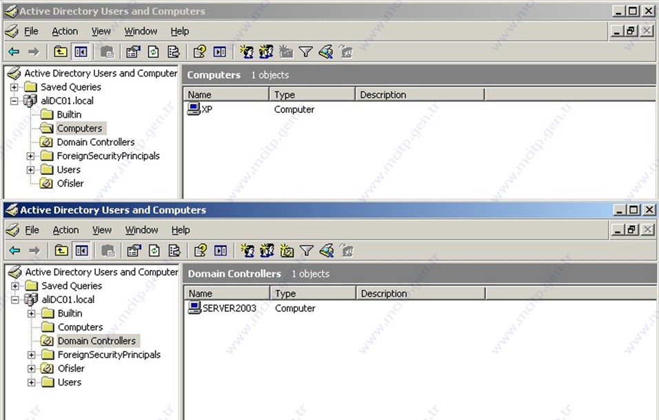 Şu anda görüldüğü gibi Computers bölümünde 1 adet client var ve Ofisler diye Organization Unit var. Şimdi 2012 migration yapmak için öncelikle