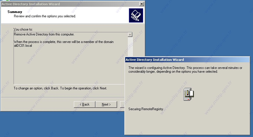 This server is the last domain controller in the domain işaretini koymuyoruz