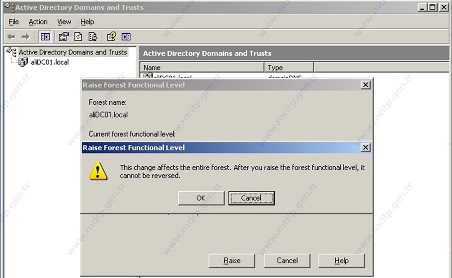 Raise Forest Functional Level seçiyoruz